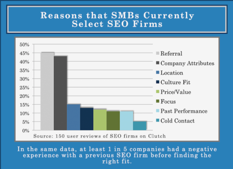 New data from Clutch shows referrals are leading driver of hiring decisions for search engine optimization (SEO) companies, but do not always produce good results.